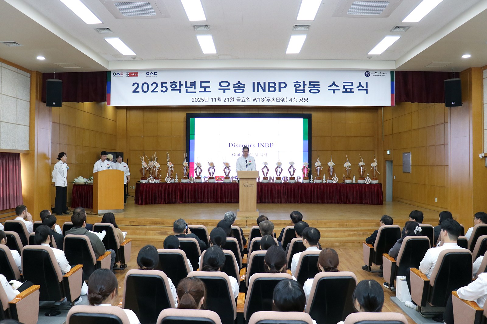 지난 1년간 INBP 과정을 통해 많은 것을 배우고 성장한 모든 학생들께 축하의 말씀을 드리며, 앞으로 훌륭한 파티시에로 자리 잡기를 진심으로 응원합니다. 이번 수료식이 학생들에게 값진 추억과 새로운 도전의 발판이 되기를 바랍니다.